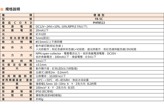 FB-5C U型投‧受光器一体