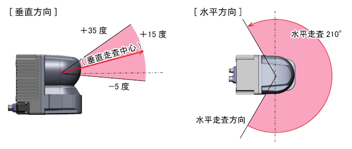 | 水平走査角度 | 210度以上 ピッチ6度 精度±0.125° |